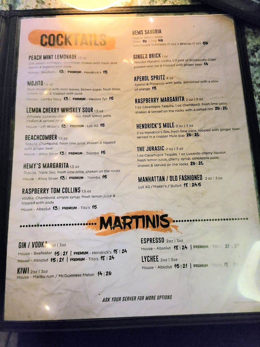 Complement your dining experience with a selection of wines, featuring varieties such as Oyster Bay Sauvignon Blanc and Josh Cellars Chardonnay, perfectly paired with your meal. The cozy patio, praised for its warmth and amiable service, is ideal for enjoying the friendly atmosphere that Hemingway’s is known for. Join us for a fantastic culinary journey that blends comfort with exquisite taste!